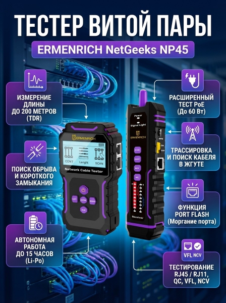 Многофункциональный кабельный тестер Ermenrich NetGeeks NP45 - Описание