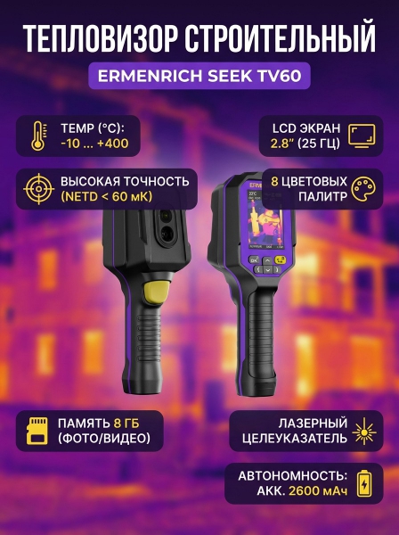 Тепловизор строительный Ermenrich Seek TV60 - Характеристики