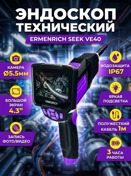 Купить видеоэндоскоп Ermenrich Seek VE40, фиолетовый по эксклюзивной цене от официального дилера. Профессиональные консультации.