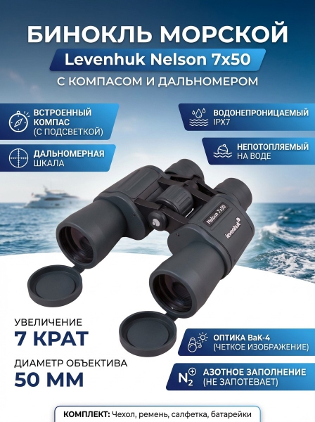 Купить морской бинокль Levenhuk Nelson 7x50 по эксклюзивной цене от официального дилера. Профессиональные консультации.