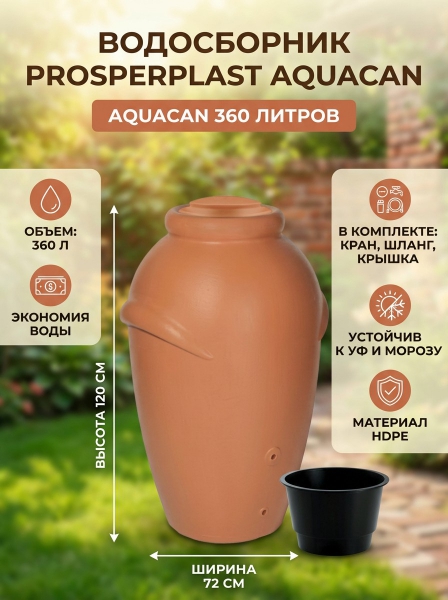 Купить водосборник Prosperplast Aquacan 360 л терракот по эксклюзивной цене от официального дилера. Профессиональные консультации.