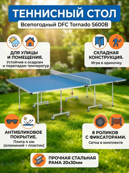 Синий теннисный стол с сеткой DFC Tornado S600B - Описание