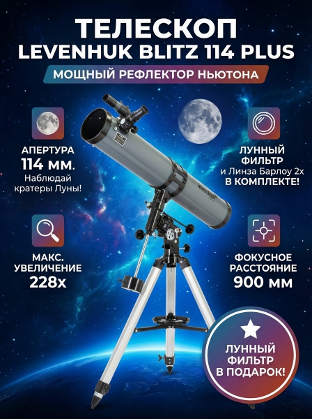 Купить оптический телескоп-рефлектор Levenhuk Blitz 114 PLUS по эксклюзивной цене от официального дилера. Профессиональные консультации.
