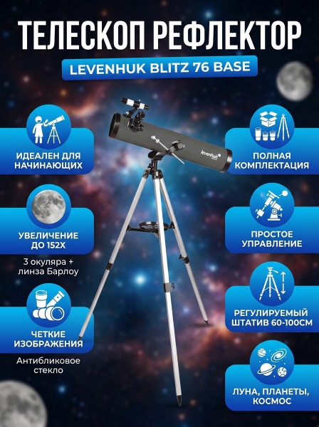 Телескоп рефлекторный Levenhuk Blitz 76 BASE - Описание