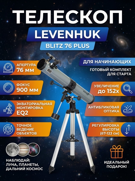 Телескоп рефлекторный Levenhuk Blitz 76 PLUS - Доставка