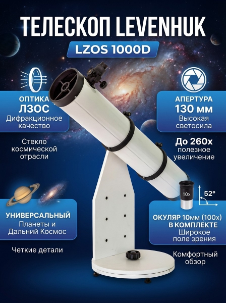 Купить оптический телескоп-рефлектор Levenhuk LZOS 1000D по эксклюзивной цене от официального дилера. Профессиональные консультации.