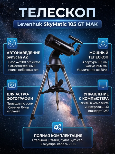 Телескоп с автонаведением Levenhuk SkyMatic 105 GT MAK - Доставка