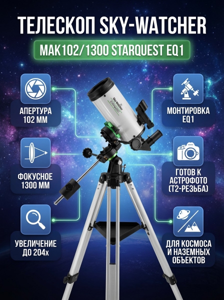 Телескоп на штативе Sky-Watcher MAK102/1300 StarQuest EQ1 - Характеристики