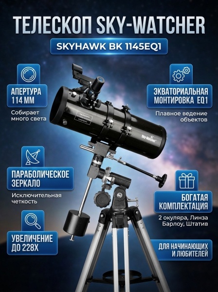 Прочитайте полный обзор, ознакомьтесь с отзывами владельцев Skyhawk BK 1145EQ1, просмотрите описание с характеристиками и фото. Sky-Watcher - это отличный выбор!