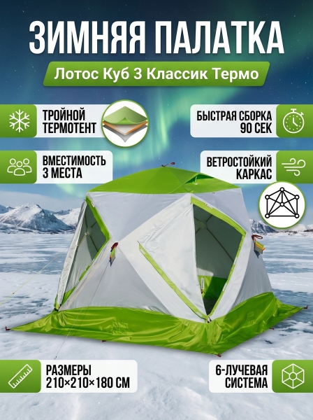 Утепленная зимняя палатка Лотос Куб 3 Классик Термо - Описание
