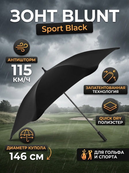 Зонт трость BLUNT Sport Black черный - Описание