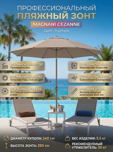 Зонт пляжный профессиональный Magnani Cezanne, тортора - Доставка